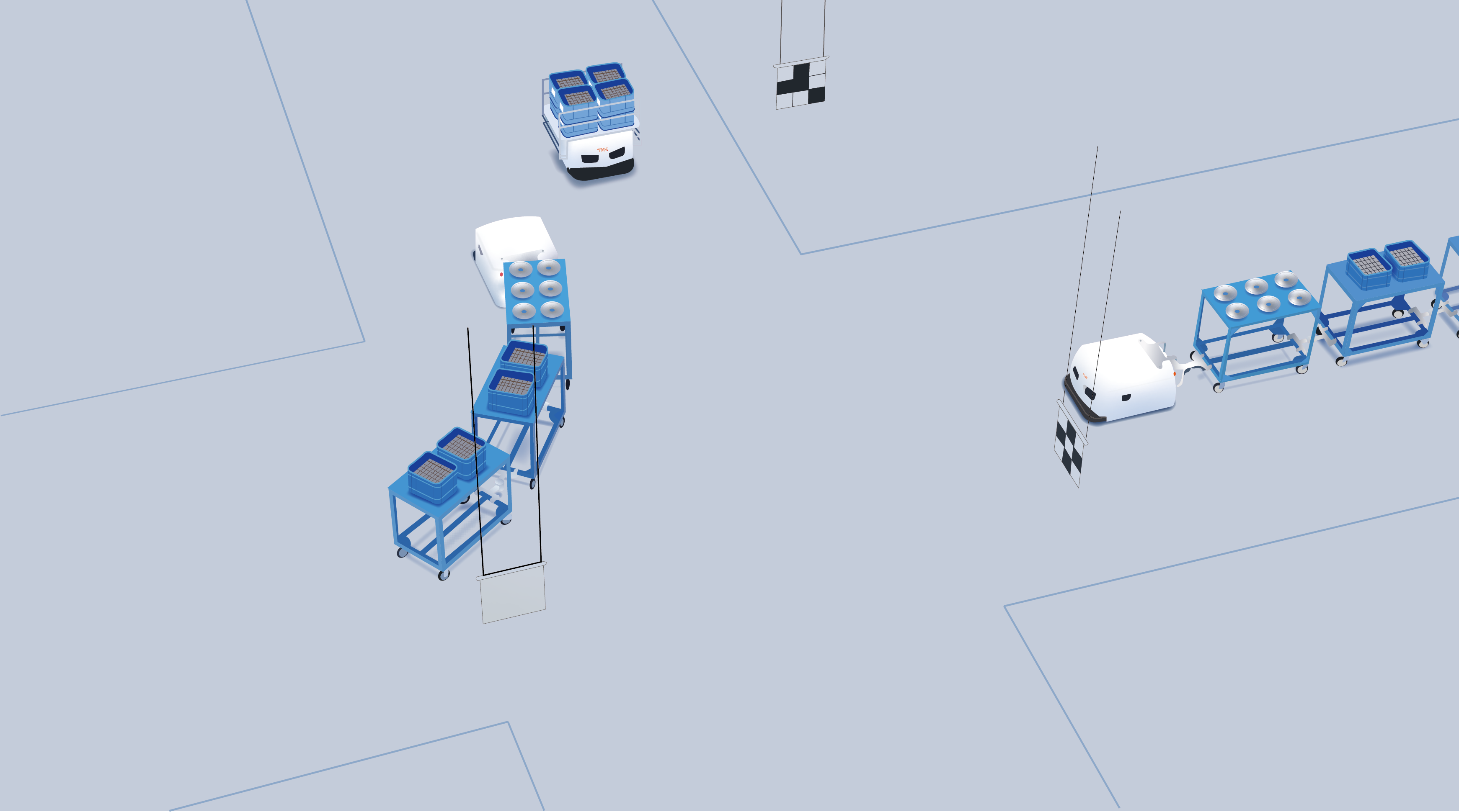 説明文:複数台の運用で経路が交差する場合、交差点でSIGNAS同士の衝突を防ぎます。