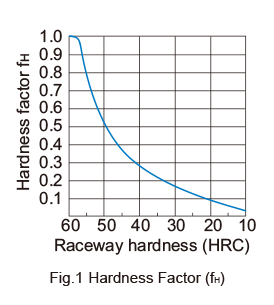 To maximize the load capacity of the LM system, the hardness of the raceways needs to be between 58 to 64 HRC. If the hardness is lower than this range, the basic dynamic load rating and the basic static load rating decrease.Therefore, it is necessary to multiply each rating by the respective hardness factor (fH).