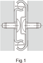 The mounting orientation of Fig.8 is applicable to model FBL35F. The mounting orientation of Fig.9must be used for model FBL48DR. To prevent a moment load from being applied, position the center of gravity of the door on the ball and cage center lines, and ensure that section A of the hanger is structured to allow free rotation. The mounting orientation of Fig.10 is applicable to model E36RS. Unlike other slide rails, model FBL48DR and model E36RS are used in a single rail configuration.Therefore, the load must be centered on the ball and the cage center line.