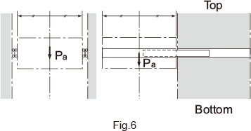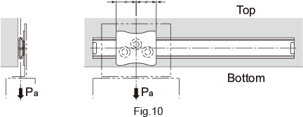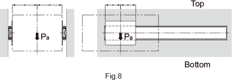 For use other than with the mounting orientation shown in Fig.6 , contact THK. The permissible load of the Slide Rail indicates the load in the direction Pa that two rails can receive in the middle of the inner rail length at the maximum stroke. The mounting orientation shown in Fig. 7is applicable to "model FBL35B" only.
