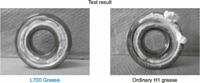 ● Leakage comparison with ordinary H1 grease by rotating a bearing containing grease mixed with 10 mass% of water
