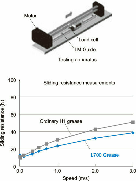 ● Measurement of sliding resistance when an LM Guide is injected with grease and operated at low speed to high speed