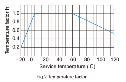 If the temperature of the spline nut exceeds the normal temperature range, the seizure resistance of the nut and the strength of the material will decrease. Therefore, it is necessary to multiply the dynamic permissible torque (T) by the corresponding temperature factor indicated in Fig.2 .