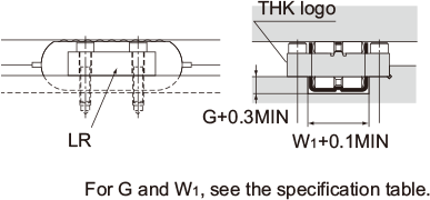 The following are examples of how to install different models of the LM Roller. To minimize the gradient of the LM Roller in the traveling direction, provide a reference surface on the mounting surface and press the LM Roller toward it. The mounting reference surface of the LM Roller is opposite of the THK logo marked on the raceway base.