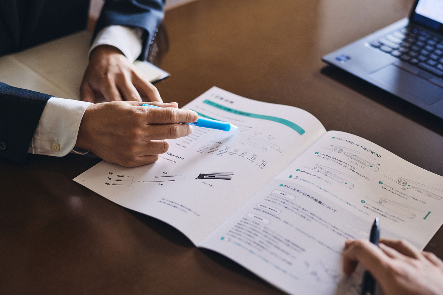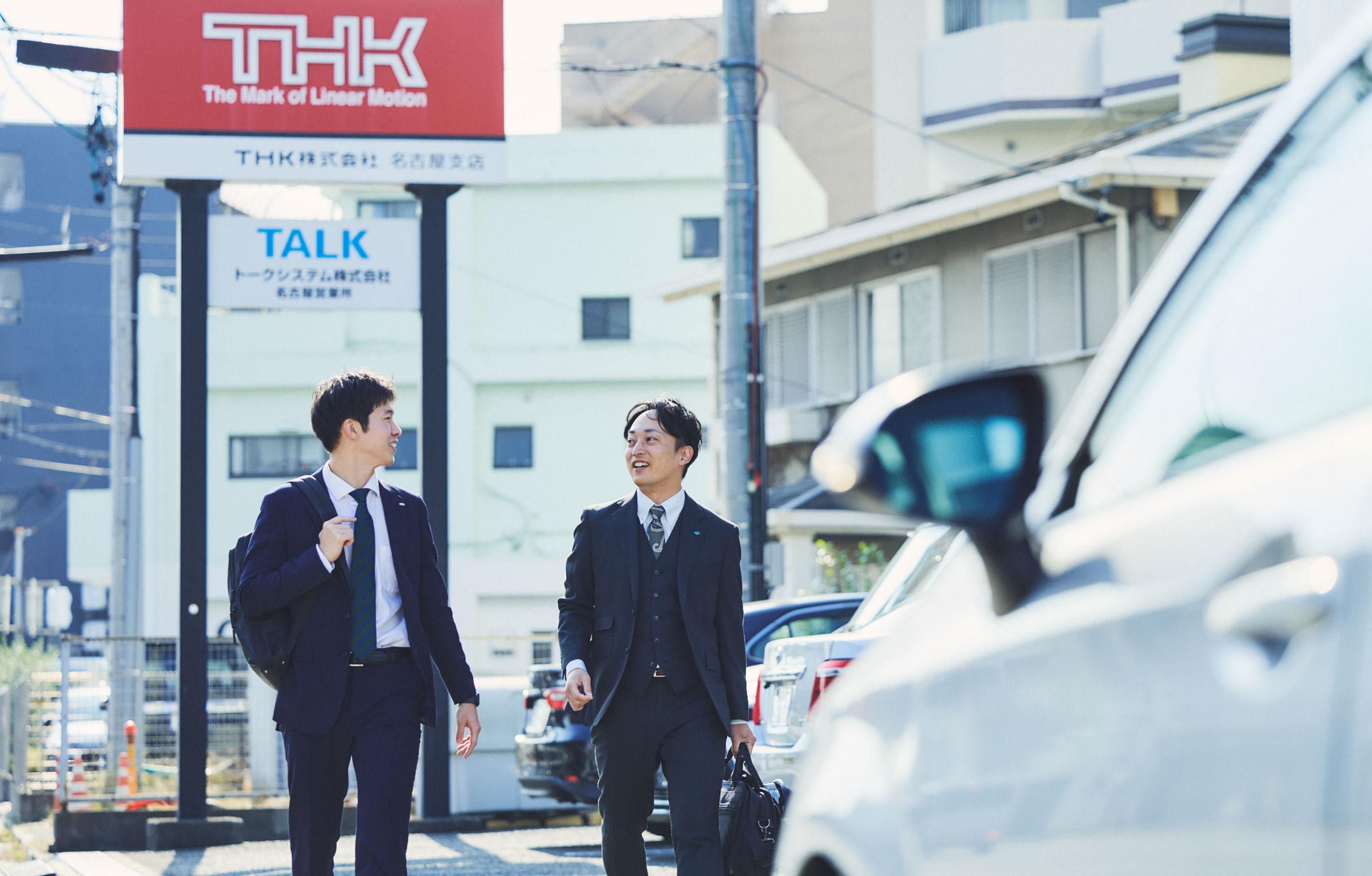 現在は東海エリアで工作機・電機メーカーなど複数社にLMガイドやボールねじといった製品を提案しています。普段の業務ではお客様が新しい機械の構想を立てる開発初期段階から議論に参加できるよう、日々の訪問で蓄積した従来機の改善点や次の開発で挑戦したいポイントを共有しながら、お客様の機械づくりをサポートしています。また、若手社員の提案サポートや案件の進捗管理も重要な業務の一つです。製造現場の自動化が加速する中、「THKに任せて良かった」と思っていただけるよう、社内の技術担当と連携して機械の性能を高める方法を模索したり、これまでのキャリアで培ってきた営業スキルや経験を後輩へ引き継いだりすることで、組織力向上に尽力しています。