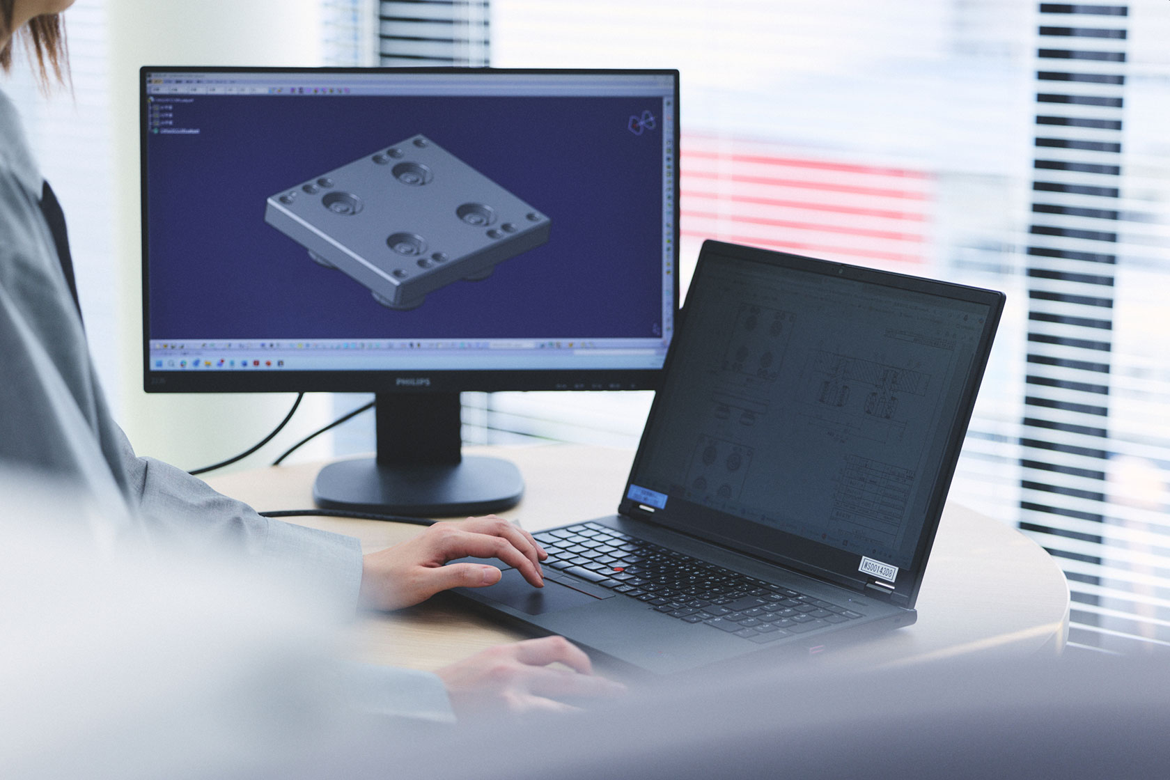 LMガイドやボールねじ、ロボット、IoTサービスなど新しい製品・サービスを生み出す仕事です。CADやCAEを用いて、お客様からの特殊なご要望にも対応します。