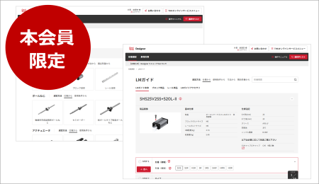 THKの発行するカタログ閲覧・ダウンロード、Webサイト上での比較機能や基本技術情報閲覧、お気に入り機能等をご利用いただけます。