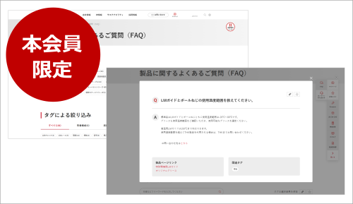 利便性の高い各種ツール類の利用や、CADデータのダウンロード、詳細な技術情報・FAQの閲覧等、オンラインサービスのすべての機能をご使用いただけます。