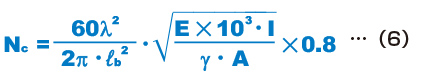 The dangerous speed of the spline shaft is obtained using the equation (6).